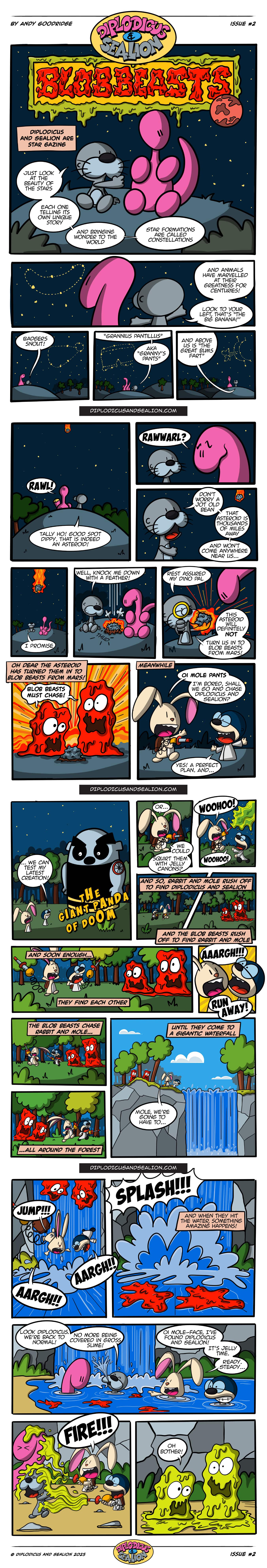 Blob Beasts is part of Diplodicus & Sealion, a comic series by Andy Goodridge. When an asteroid crash causes a gooey transformation, the race is on to get back to normal.
